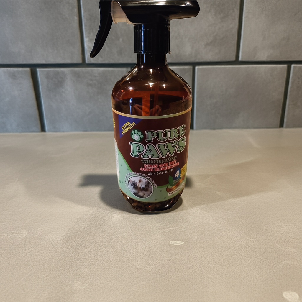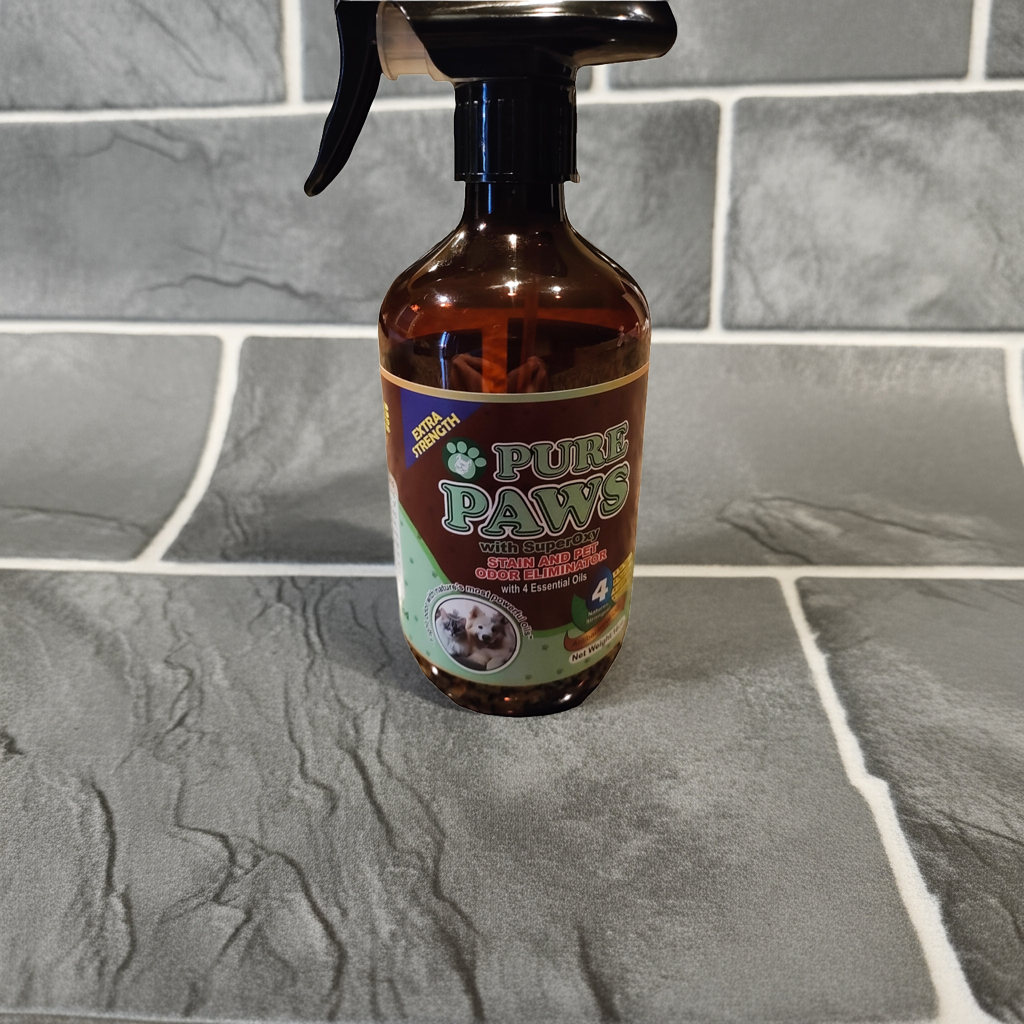 Introducing our powerful stain and deodorizer eliminator. Designed to eliminate pet stains and odors. We have harnessed the power of **SuperOxy with the antibacterial properties of Tea Tree Oil, Peppermint, Lemongrass, and Pure Cinnamon Oil, These oils work together to create a potent formula that can tackle even the toughest urine stain and odor. Say goodbye to unpleasant stains and smells, and hello to a fresh, clean home with our pet stain and odor spray.