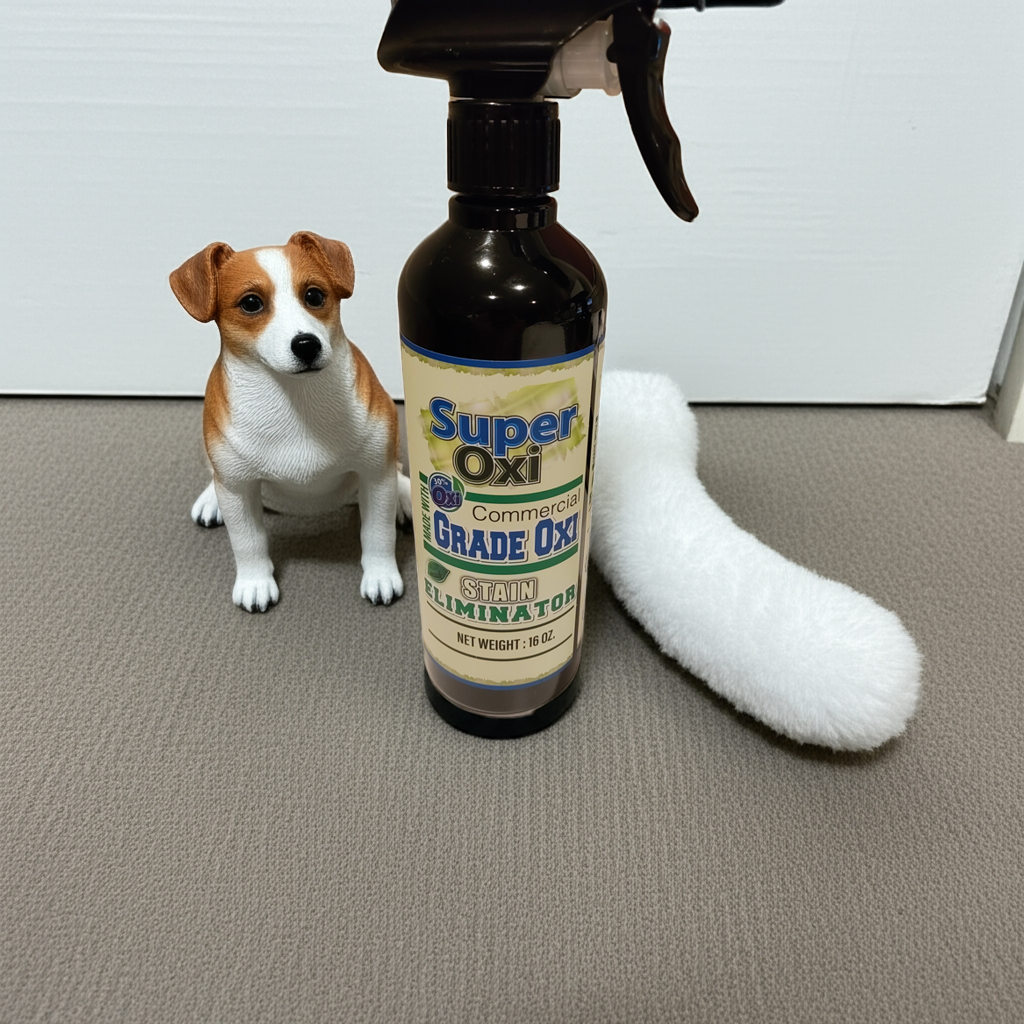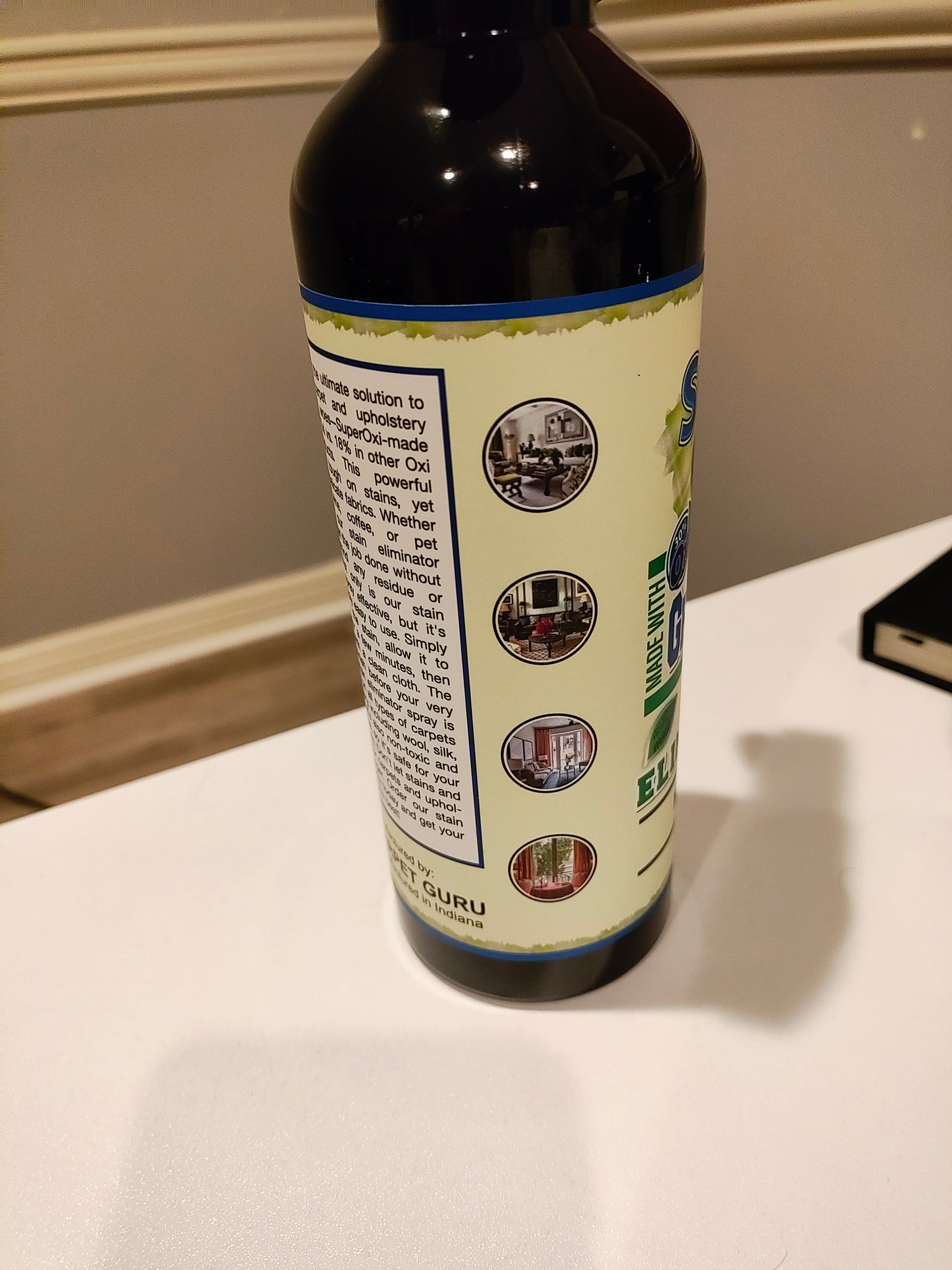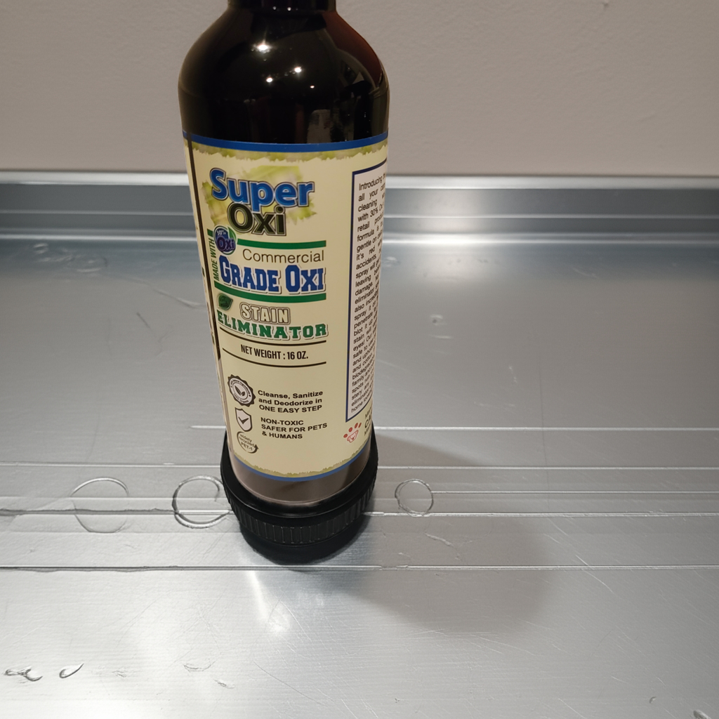 Introducing the ultimate solution to all your carpet and upholstery cleaning woes--SuperOxi--made with 30% Oxi vs. 18% in other Oxi retail products. This powerful formula is tough on stains, yet gentle on delicate fabrics. Whether its red wine, coffee, or pet accidents, our stain eliminator spray will get the job done without leaving behind any residue or damage. Not only is our stain eliminator spray effective, but its also incredibly easy to use. Simply spray it on the stain, allow it allow it to penetrate for a few minutes, then blot it up with a clean cloth. The stain will vanish before your very eyes! Our stain eliminator spray is safe to use on all types of carpets and upholstery, including wool, silk, and cotton, It's also non-toxic and biodegradable, so it's safe for your family and pets. Don't let stains and spots ruin your carpets and upholstery any longer. Order our stain eliminator spray today and get your home looking it's best!